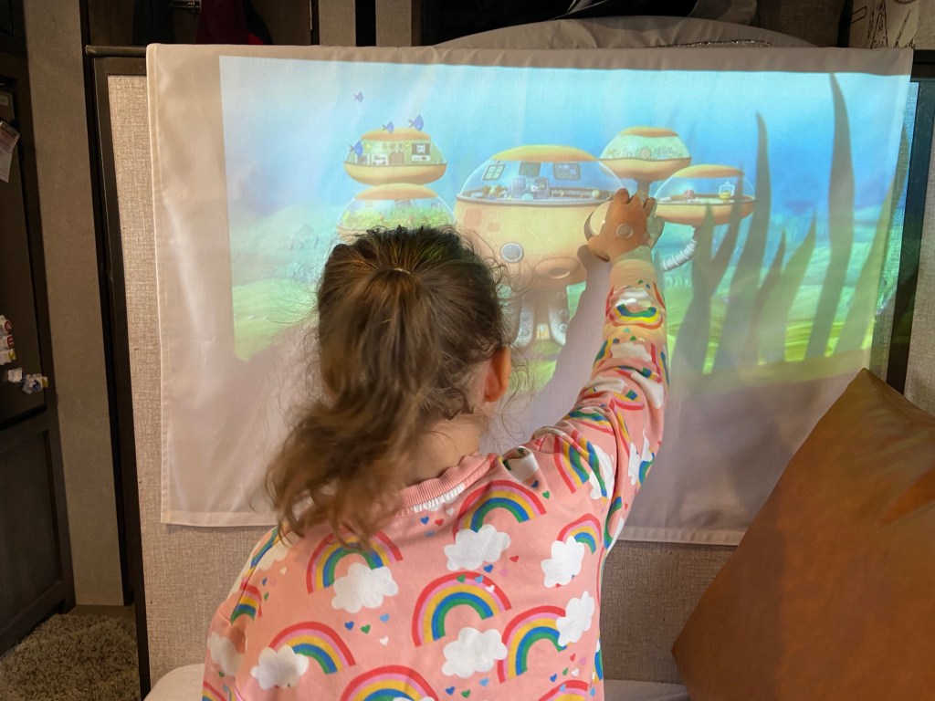 Getting cozy now for the night and prepping a bit for tomorrow. Can you believe tonight was the first time I set up the projector since we moved in (tonight is night 5). Amelia is enjoying her Octonauts currently, and I’m assuming DJ, Jackson, and myself will likely watch something together tonight on it.