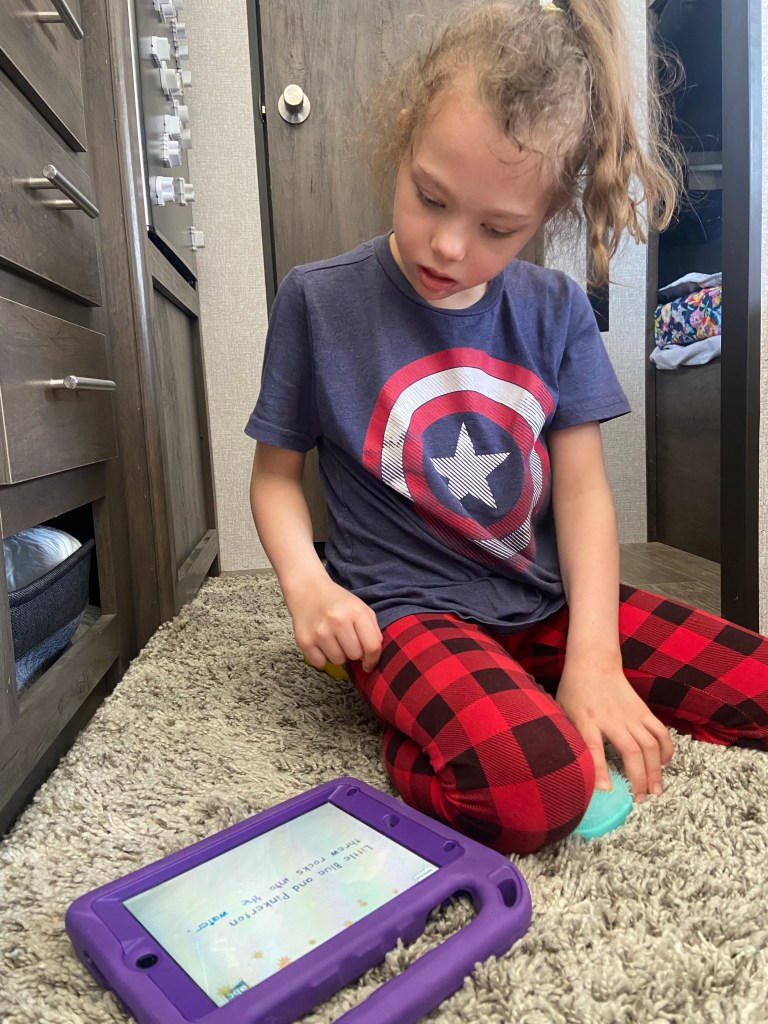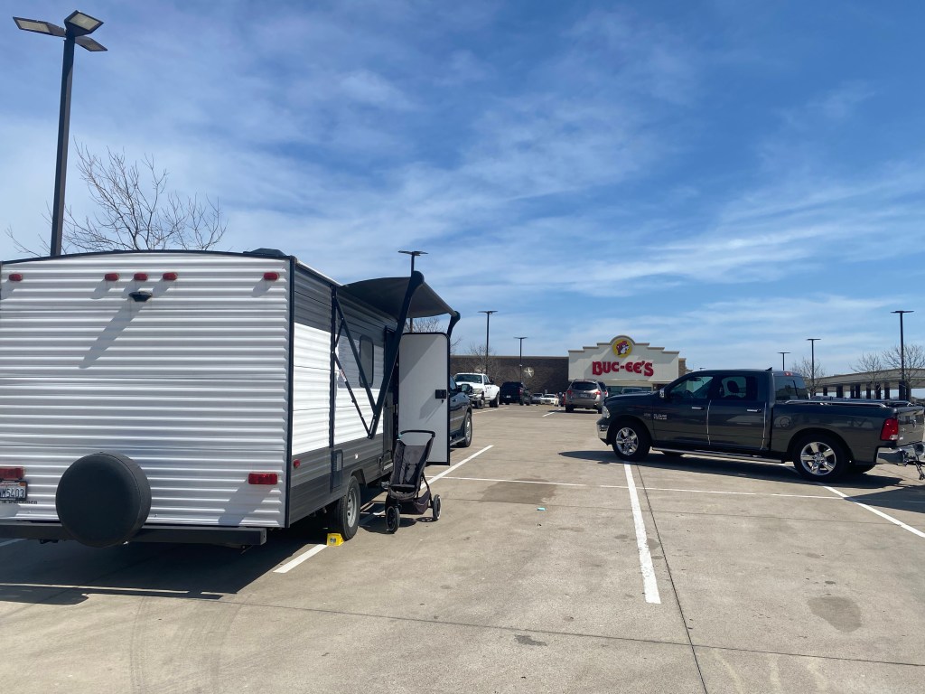 Amelia happily waited out the BUC-EE’S shopping time in the camper. DJ found some hot sauce and some fresh chocolate chip cookies. I think we have enough sweets now to last the rest of the trip.