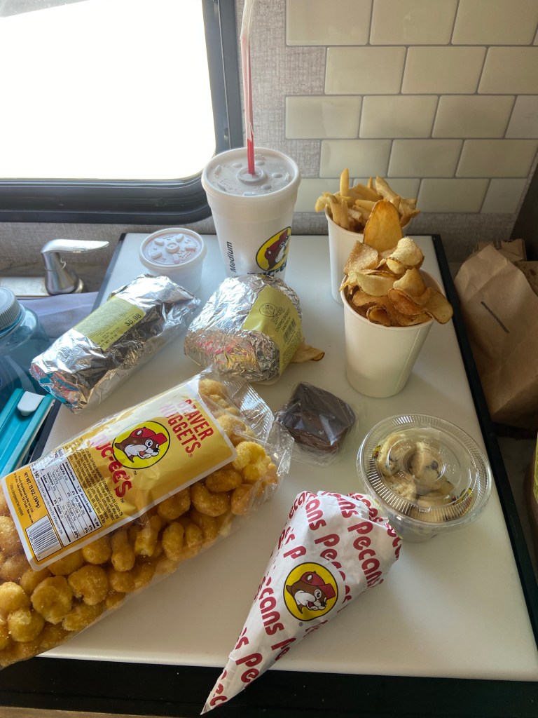 BUC-EE’S! We intentionally found a BUC-EE’S on the east side of Dallas today for lunch. Not gonna lie, we had more fun here then we probably should have. It’s a mega gas station/food/ convenience store/ home decor/ clothing/ outdoor goods/ etc… strange combo but fun and fabulous! We can pinpoint wanting to stop because of our favorite travel YouTubers, Kara and Nate. They went to the biggest one in San Antonio during the earlier Covid days, so we were motivated to see the craziness and the hype for ourselves while in Texas.