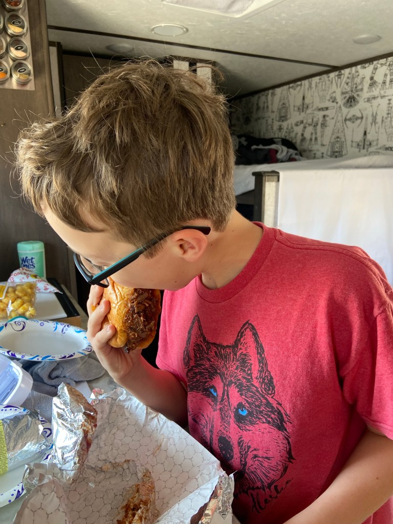 Jackson’s brisket sandwich was huge! …and he got the normal size.