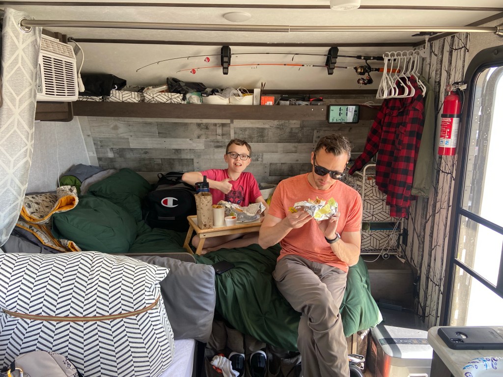 Lunch in the camper… so freaking convenient, especially with a sassy Amelia.