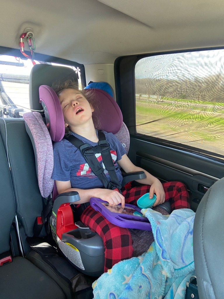 After all the excitement and lunch, Amelia caught a quick cat-nap in the truck while driving to Caddo Lake State Park, TX.