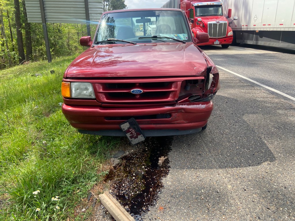 Obviously we pulled over to the shoulder and so did the other truck. DJ and I got out to investigate and see the damage. As we did, the couple of vehicles that had been next to our behind us, slowed to a stop to check on us, which was nice. Even a semi-driver asked if we needed anything.