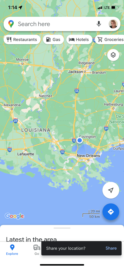 Point of reference for where we are… just north of New Orleans. We were supposed to camp at a state park tonight about 30-45 more minutes further south from here.