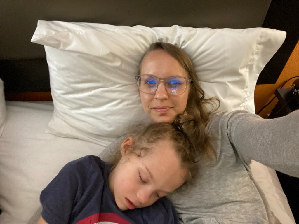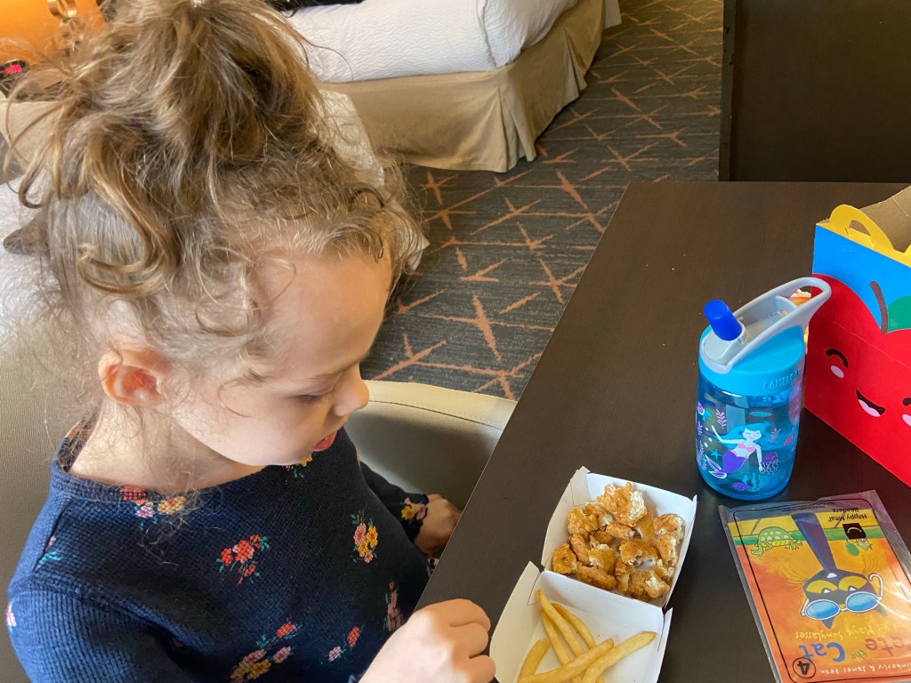 As mentioned above, Amelia skipped the beignets and we made sure to get her favorite chicken nuggets and French fries from the McDonalds next-door instead. This little lady is definitely more of a savory girl and doesn’t do much for sweets. She was super happy to see the little red happy meal box in my hand when I walked back into the room with it tonight.