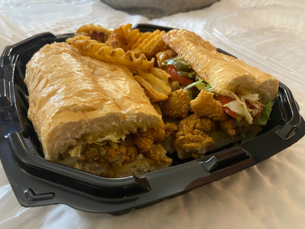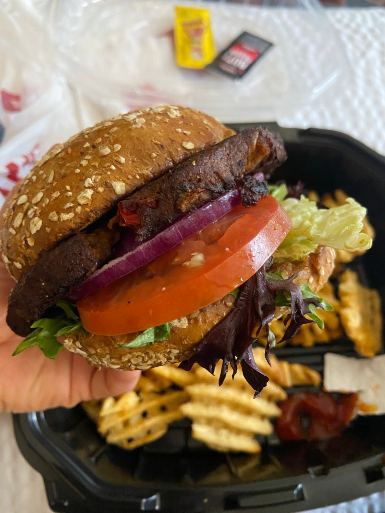 The rest of us ordered DoorDash for dinner. DJ tried a catfish sandwich. I got a veggie burger and Jackson got a normal cheeseburger. We are all overly stuffed on fried food and we aren’t complaining.