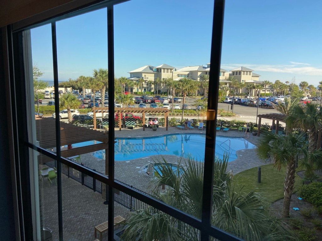 Our view from our hotel… we may or may not attempt to get into the pool today still… tbd. We saw people swimming yesterday, I’m not sure if it’s heated or not. (Guessing not?)