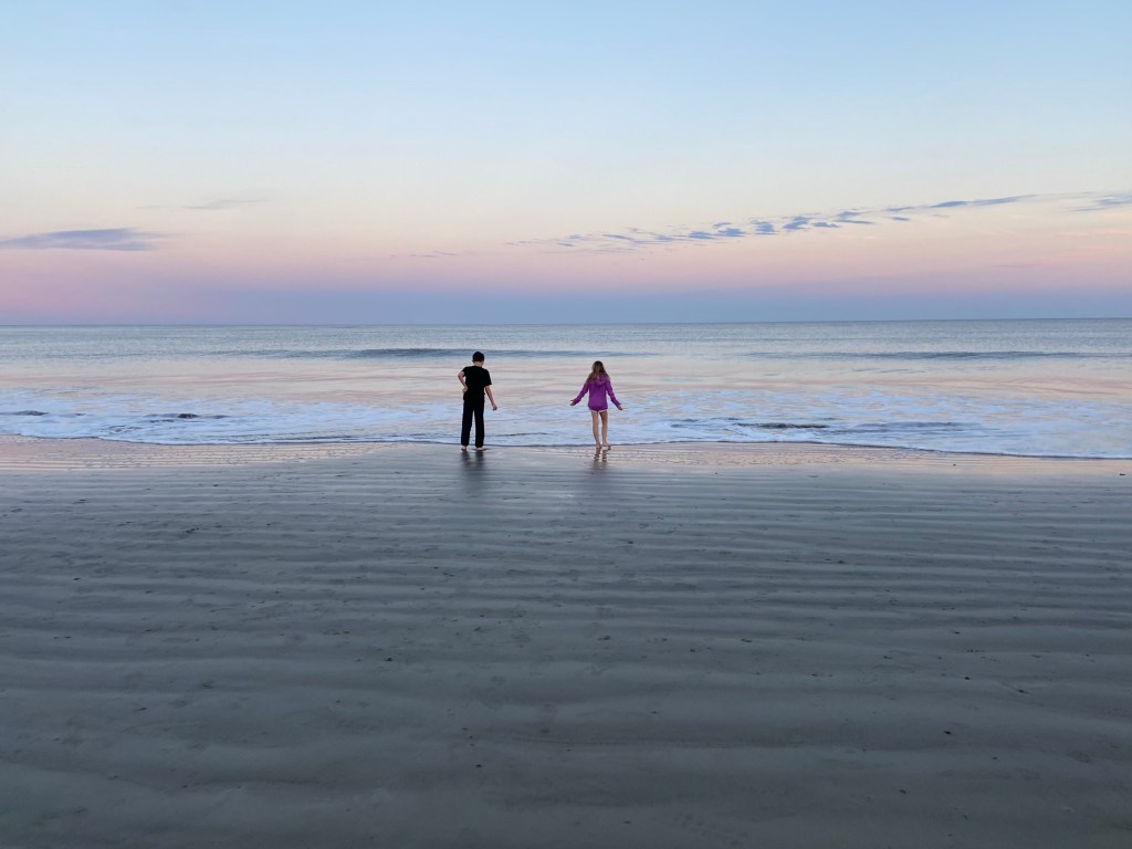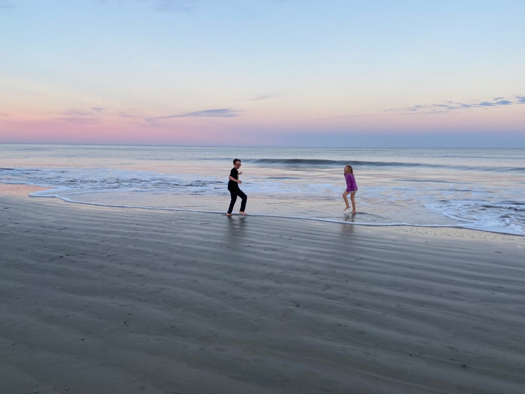 After our pizza dinner, I headed up with Amelia to get her showered and get her evening meds. DJ and I swapped later and I headed down to the beach to see the fabulous pink hues from the sunset.