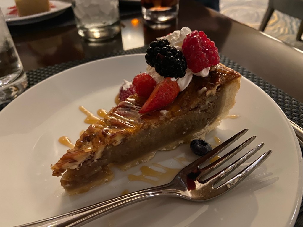 As mentioned above, later last evening, Becca and I went and found some dessert. I got my first piece of pecan pie ever and Becca had a slice of New York cheesecake and we hung out chatting for close to two hours. DJ hung out with the peanut. Jackson hung out with Adam and the other kids watching a movie.