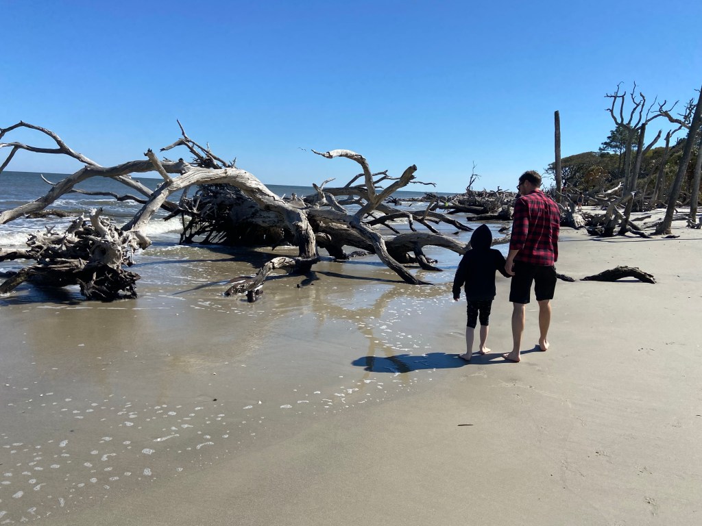 The beach is covered in these dead driftwood trees. Amelia enjoyed exploring them too for awhile.