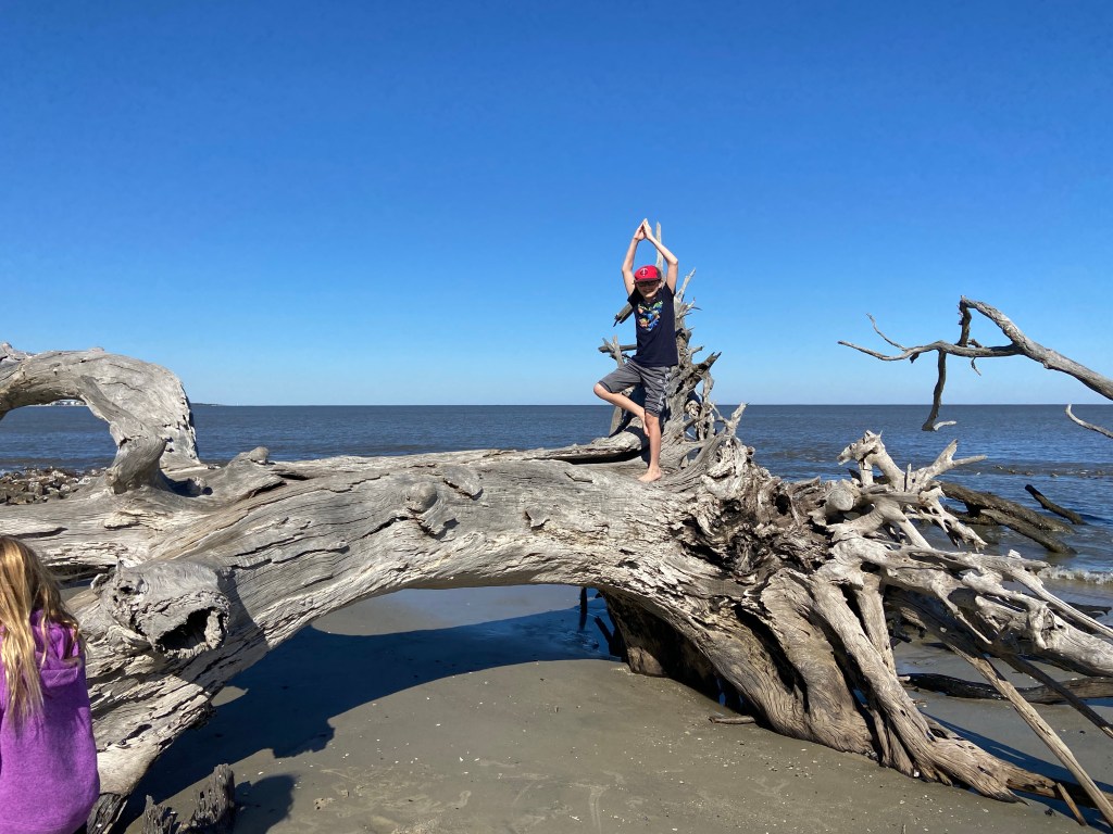 We decided since we weren’t kayaking, that we should go over to the Driftwood Beach instead. The kids enjoyed climbing all over these huge driftwood trees.