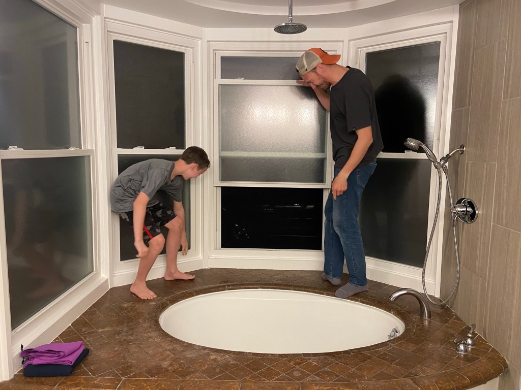 The boys were giggling last night about opening the windows and then showering. Jackson thought it was hilarious.