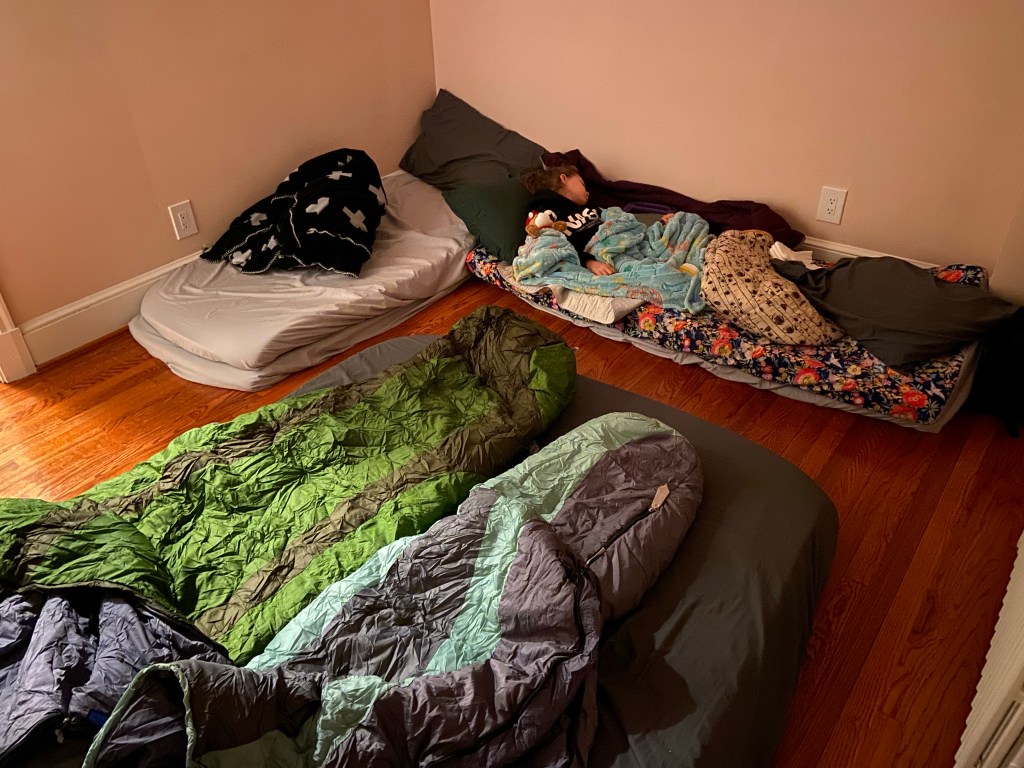 We all ended up in Amelia’s room because I needed to be in there…. Which meant that DJ needed to be in here as well to share the camper mattress or we needed to move her onto the big mattress with me and give DJ the little one. Jackson’s room faces the front/street and doesn’t have a curtain on his big window yet… so he opted to jump in on the slumber party. Clearly we are all accustomed to sleeping in a tiny space together after having been in hotels and the camper for the last 3 weeks. I think this is how we are sleeping again tonight. (I did order some curtains today and a rug for Amelia’s bedroom).