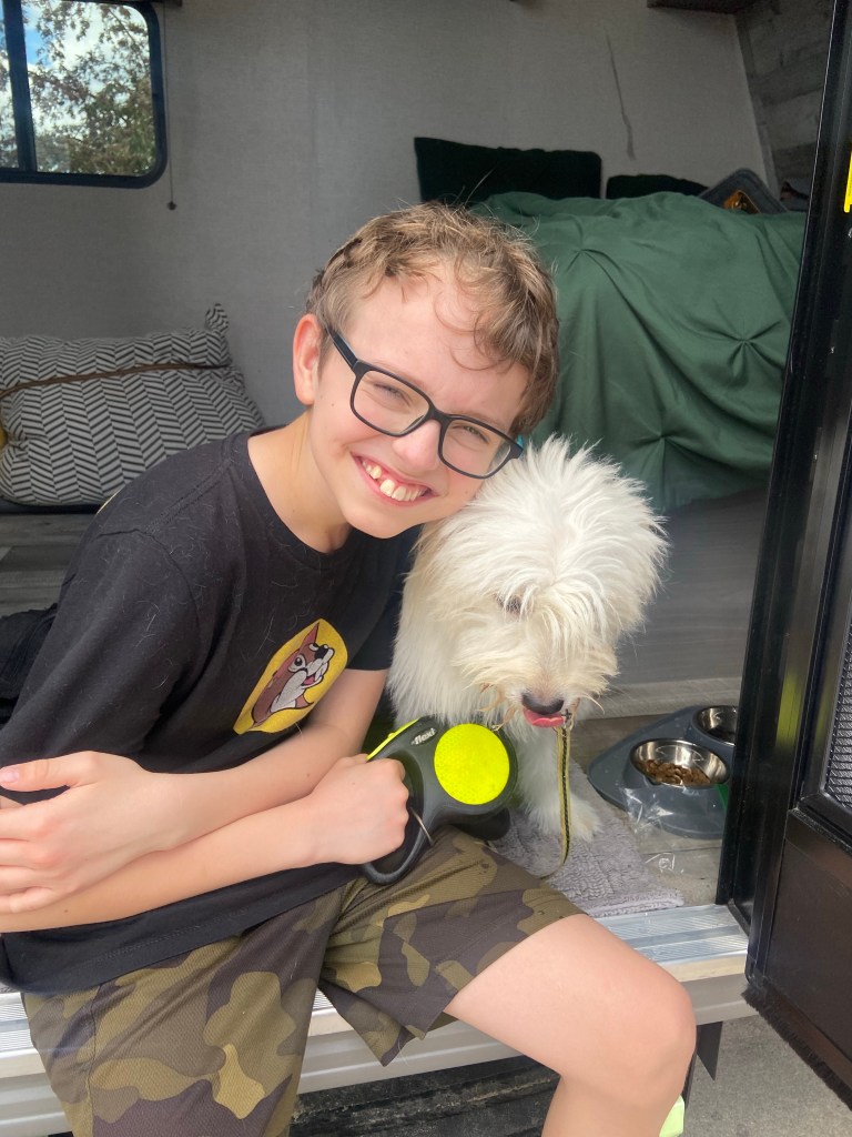 Messi did fabulous last night for his first night in the camper. He had to deal with all the things at once, so it was like shoving him off into the deep end and hoping for the best.