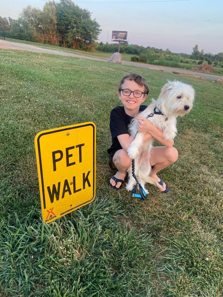 At our 3rd stop for the day, I took Amelia into the camper to use the bathroom while DJ got gas and Jackson took Messi potty. The boys then headed into the travel center to use the bathroom and left Messi in the camper with me and Amelia.
