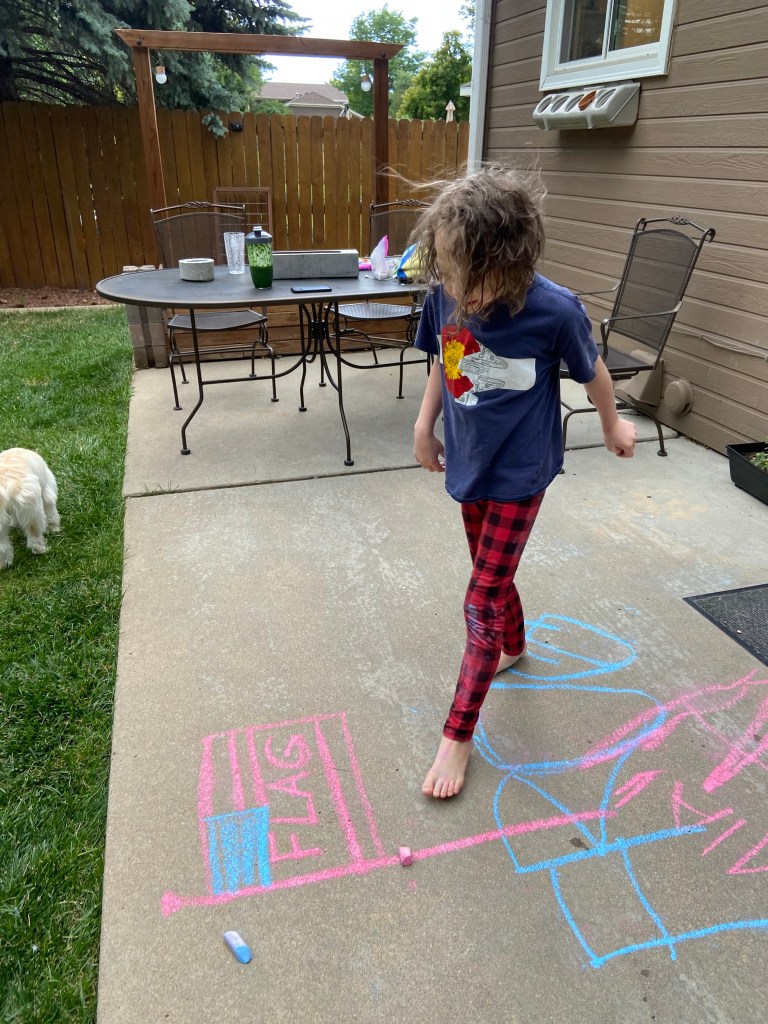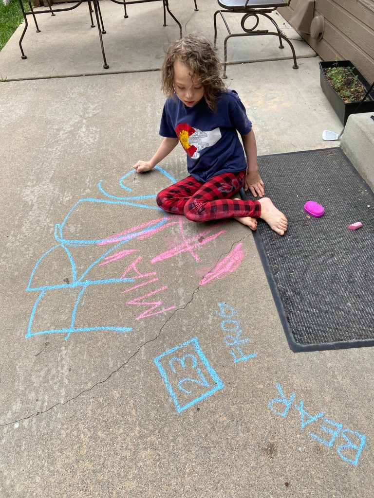 We got Amelia to do some chalking and she had a blast! It was nice to see her back at her spunky self this afternoon after she had been a blob this morning.