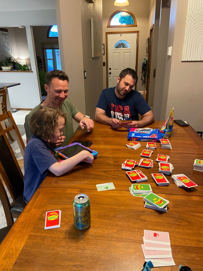 After dinner we play lots and lots of rounds of Apples to Apples. Jackson is definitely getting funnier this days and he did quite well. Amelia also sat at the table for a few minutes before she went to bed.