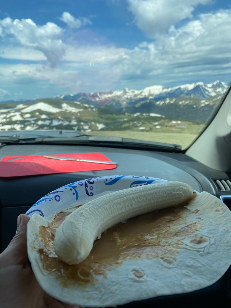 We ended up eating lunch in the truck with this view. Not too shabby if you ask me. We kept it simple and did PB banana roll-ups in the truck.