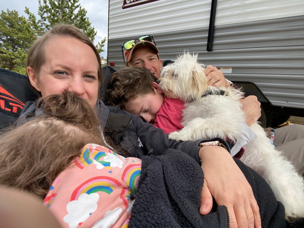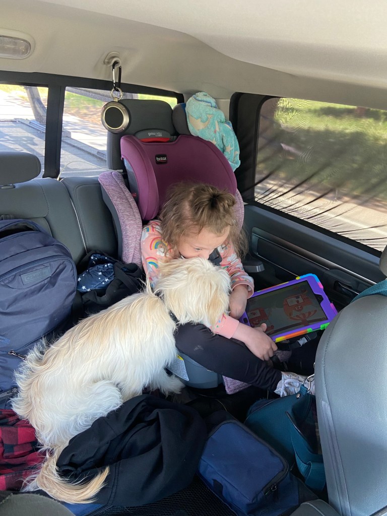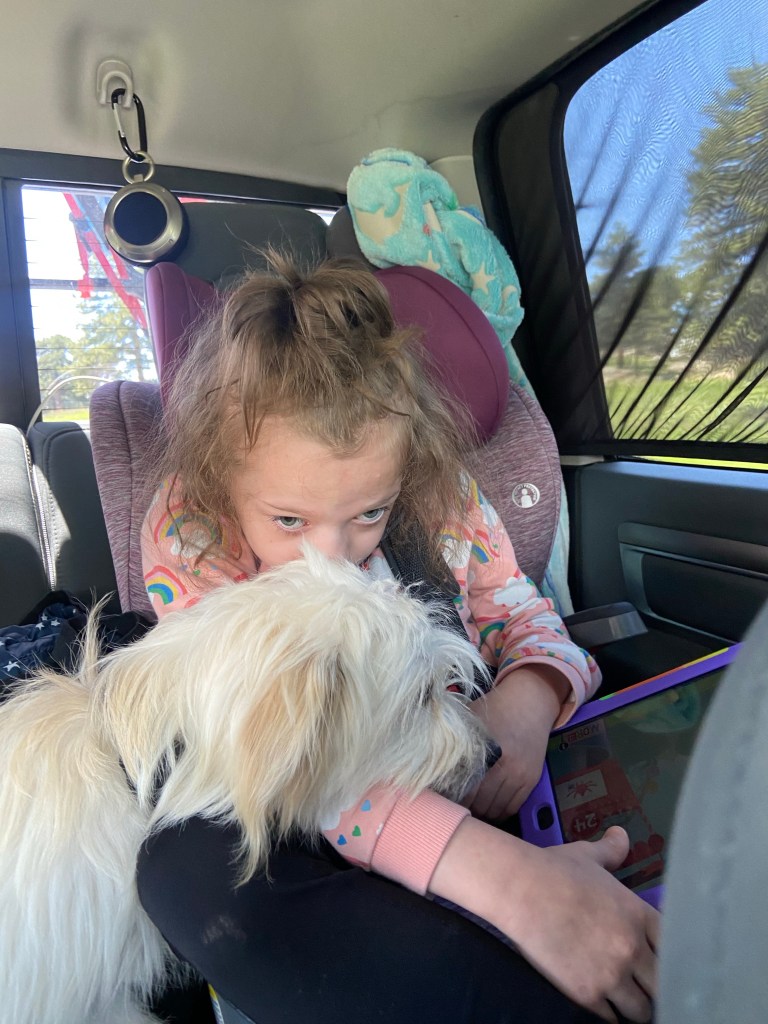 We drove around a bit more and realized everyone was burnt toast so headed back to the camper. Messi snuggled in with Amelia on the drive back and it was the absolute cutest thing ever!