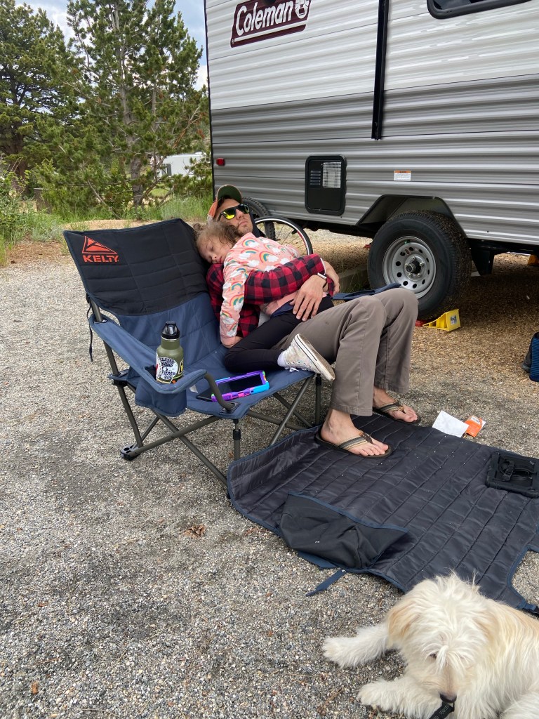 We had to wake up Jackson so hopefully he sleeps tonight. He got somewhere in the 1-1.5 hours for a nap. Snuggles on the double camp chair with the 5 of us!