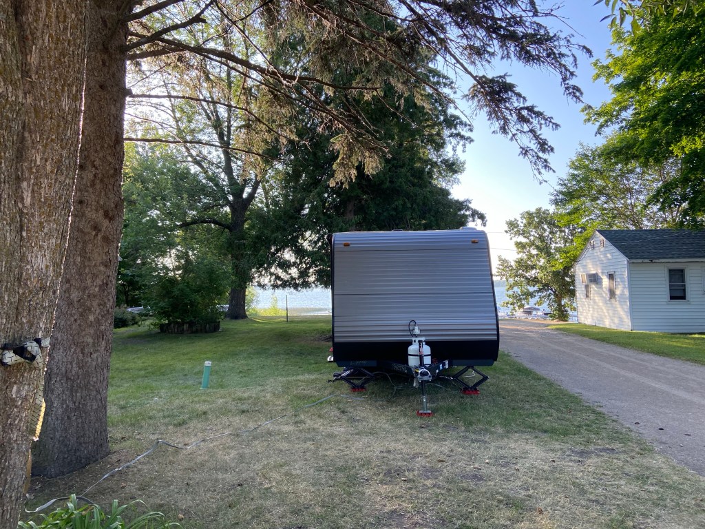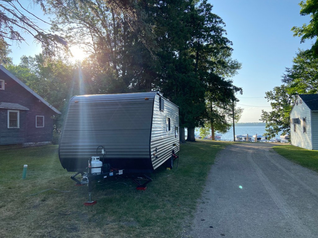 Another great day at the lake. We have electricity but no other hook ups here. We do have water in our fresh tank and can wash our hands. I go into the blue cabin to wash dishes every night to save water. We also shower and potty during the day either in the blue cabin or the in one of the 2 full bathrooms in building with the office/ game room/ laundry room/ fish cleaning room…