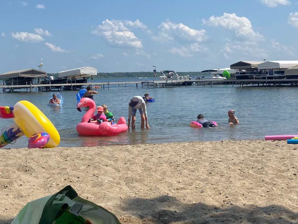 Jackson went fishing this morning at a lake nearby. Swimming and beach time happened later this afternoon to wait for the shade to appear. Amelia still isn’t fond of the water. I didn’t even bother with changing Amelia or myself into swimsuits today. We just got our toes and legs in again.