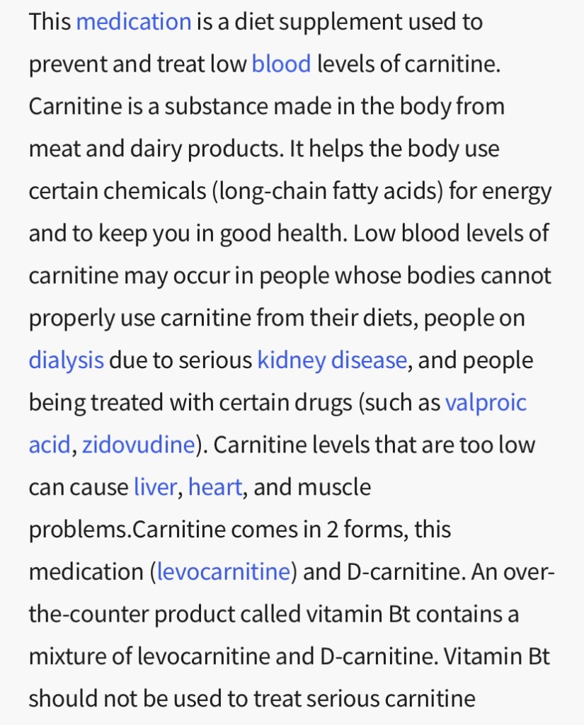 If you read below, this is from WebMD about the levocarnitine supplement: