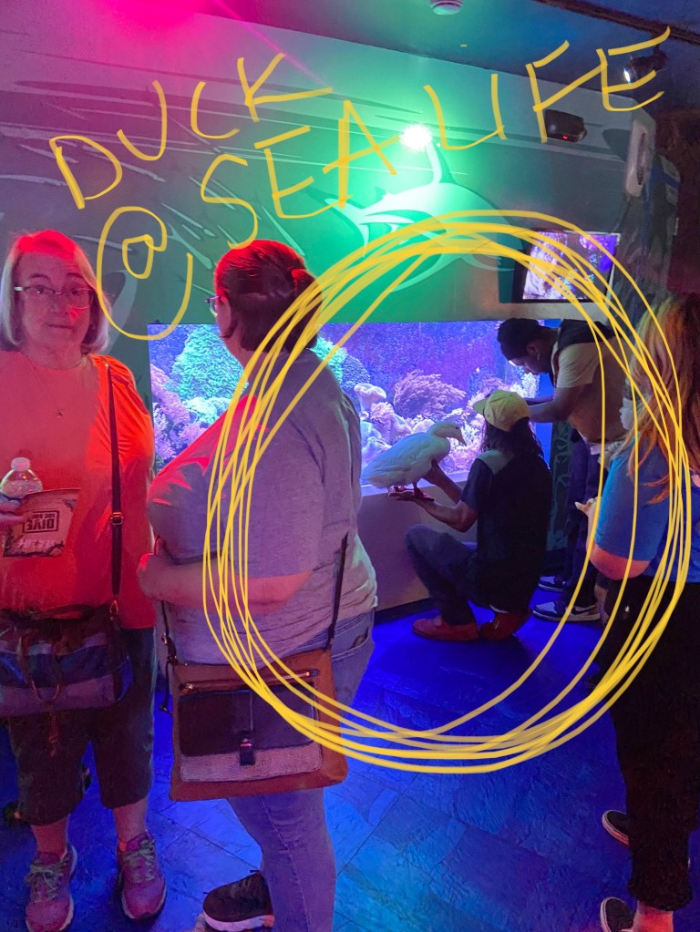 Photo above is of an apparently famous YouTube duck? (Overheard he has 2 million followers?) Not sure, we haven’t done much searching for it yet. However, I’m sure we will be in their video in the background at somepoint as we kept crossing paths. And yes, I do realize I said a duck visited Sea Life. We were as baffled by it as you. Not sure what they did or how they managed to convince Sea Life to let them in (guessing $$$$$), but they had a Sea Life guide and everything and filmed the duck visiting Sea Life. It was weird.