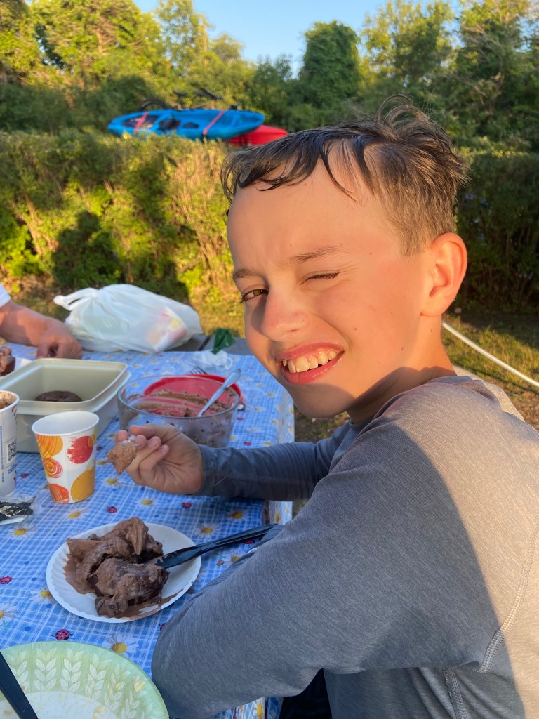 My mom made dinner tonight and brought it out to the camper. Jackson and Nana made lava cakes for dessert and they were yummy!