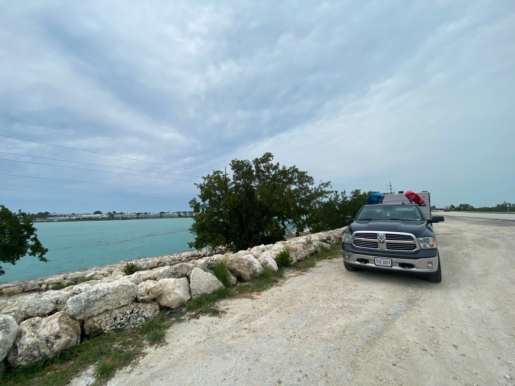 We ended up driving until about 11:15 am when DJ found this pull off spot still in the Keys for lunch! 1000% YES! We love our random pull off spots, and this one was awesome. That water is just unreal!