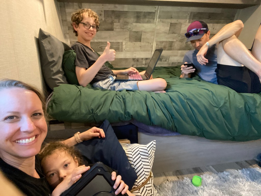 I don’t think we will be up to too much the rest of the evening. I have some dishes to do and the boys are currently checking out the area we could go kayaking from our KOA. We will be here for 2 nights and then we start on our long road trip back home on Saturday!