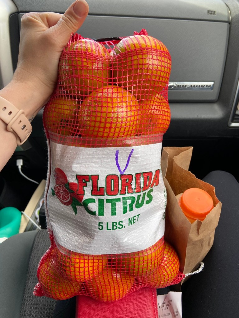 However… I got fresh, legit Florida oranges at the last minute! We got these at a cute shop called “The Orange Shop.” DJ was parked on the street, (which was a busier road) so I didn’t take any time to look around other than notice some of their other items from jellies/marmalades, orange chapstick, nuts, etc… while waiting in line to check out. I bought fresh orange juice too!