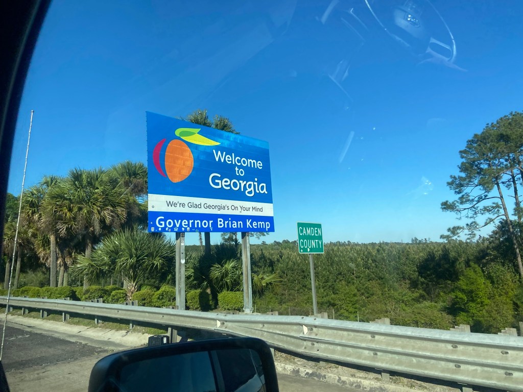 We made it just over the boarder into Georgia this evening. This makes our 21st state we will have camped in (as we didn’t actually camp in Georgia after our accident last year even though we paid for a campsite and left our camper at a campground the 3 nights we spent on Jekyll Island, GA). Anyways, it’s officially getting crossed off as camped in after tonight!