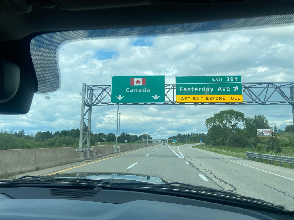 We also pulled over at the last rest stop before crossing the border. We all used the bathroom, cleaned up the inside of the truck a bit, and headed to Canada.