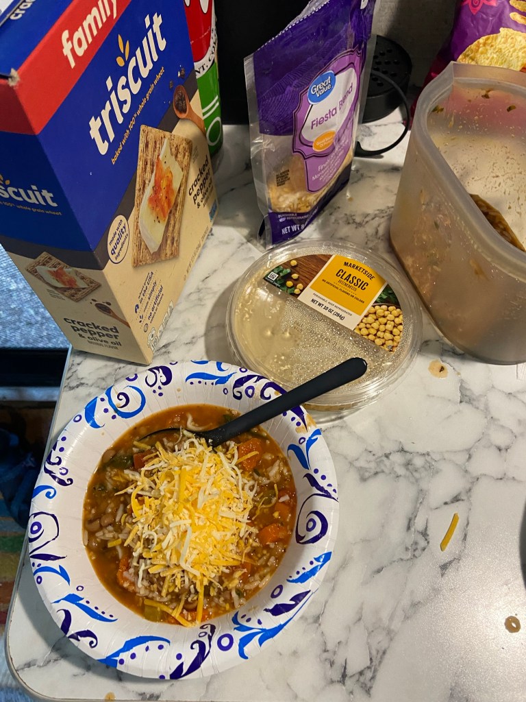 Once thru the boarder, we headed to our campsite at the KOA on the north end of Sault Ste Marie. We got camp set up quickly and had round 2 of frozen leftover black eye pea soup, except this time I mixed in our leftover rice for the starch. We had it with triscuits and hummus. Quick yummy meal.